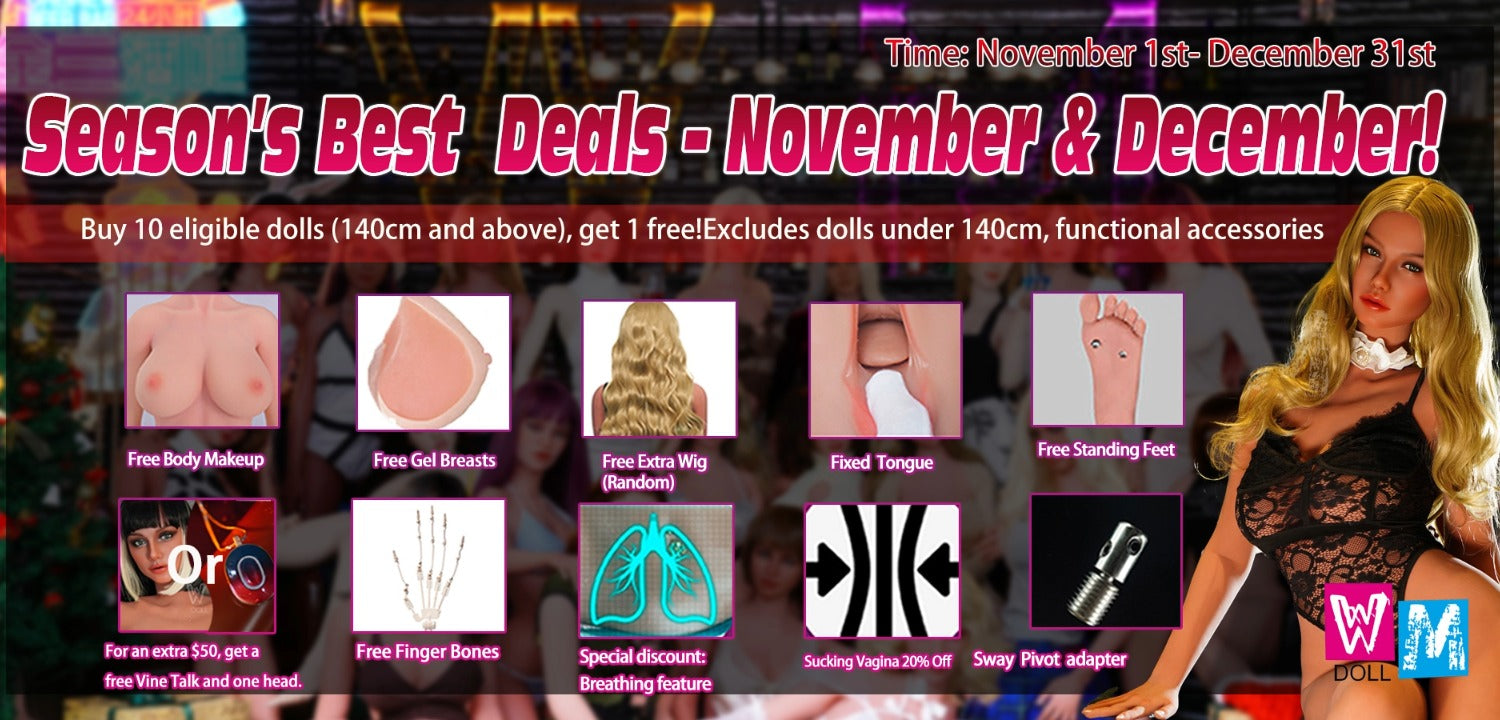 Máme také několik speciálních nabídek, které jsou pro náš obchod jedinečné. U některých panenek je součástí standardní výbavy několik vylepšení (v jiných obchodech jsou tyto doplňky za příplatek). U oblíbené značky WM-Doll při nákupu z Docklandet.