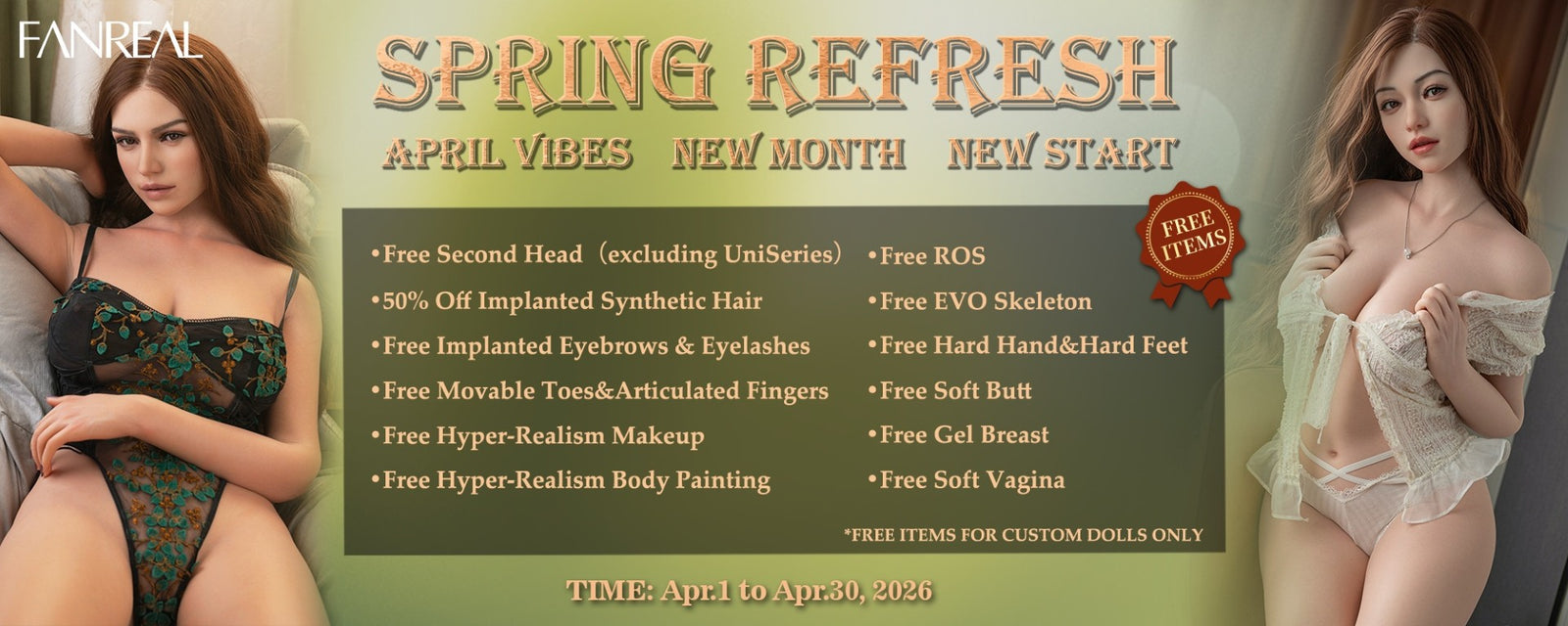 Každý FanReal Doll je uměleckým dílem, které bylo vyrobeno ručně s maximální péčí a precizností. Společnost nabízí řadu možností přizpůsobení, což znamená, že každou panenku lze přizpůsobit konkrétním přáním zákazníka. To zahrnuje výběr odstínu pleti, barvy očí, účesu a mnoho dalšího. Vysoká kvalita materiálů a výroba zaměřená na detaily činí z každé panenky exkluzivní výrobek, který stojí za investici.