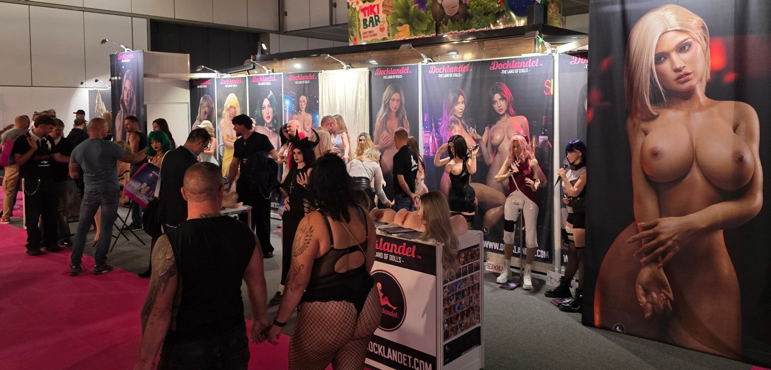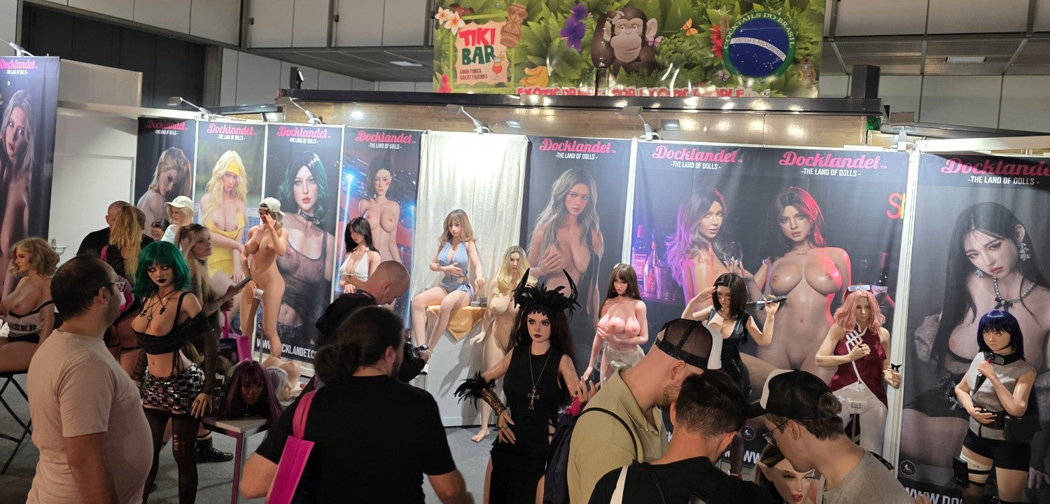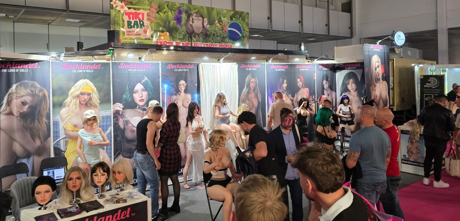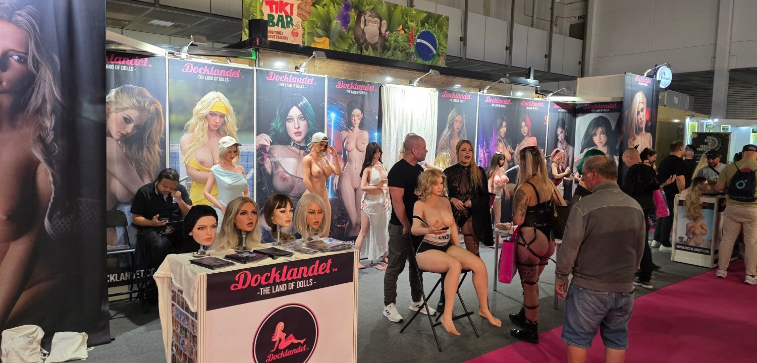 My v Docklandet reprezentovali někteří z našich hlavních partnerů se svými krásnými panenkami. Z TOP-CYDOLL jsme měli 3 plně silikonové panenky, Isabellu, Polly a Zhimin (zleva doprava). uprostřed máme Tracy.B od SE-Doll který je S-TPE a navzdory své nízké ceně je skutečně nádherný. Pak tu máme Noa od nové značky LilyDoll (úzký vztah s SE-DollCenově dostupná a kvalitní hybridní panenka s křivkami těla z materiálu S-TPE a realistickou silikonovou hlavou. Poté si prohlédneme silikonovou panenku "Lita.A", exkluzivní panenku od společnosti Lita. SE-Doll ve stylu inspirovaném postavou Ality. Pak tu máme Sakai z Elsa Babe se třemi ňadry, vždy oblíbená zejména mezi těmi, kteří panenky dosud neviděli. V pravé části stánku pak máme dvě cosplay panenky od firmy FunWest Doll. "Sakura" a "Hinata" s nindža stylem inspirovaným japonským seriálem Naruto. POZNÁMKA! Cosplay znamená napodobování stylu, cosplay panenky nejsou oficiální licencované produkty. O kousek dál ve stánku jsme měli rozestavěné 3 panenky a celou řadu hlav. Irontech Doll's Eila Adams, který vznikl ve spolupráci se skutečnou pornohvězdou Eilou Adams. Eila, známá také jako "nahá reportérka", navštívila veletrh již v minulosti, ale letos byla přítomna pouze její verze panenky. Ještě že jsme panenku přivezli pro všechny fanoušky Eily! Uprostřed stánku vidíme Silvanu (Wushi custom) z filmu Starpery. Zcela vpravo pak máme Lily s gotickým stylem od FunWest Doll.